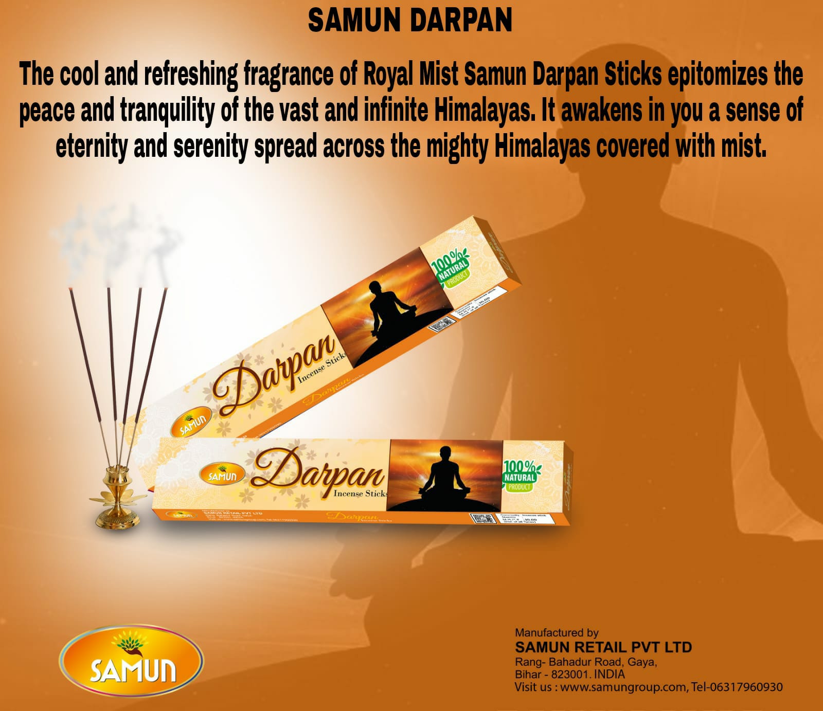 The Cool & Refreshing reference of Royal Mist Semun Darpan Sticks epitomizes the peace & Tranquility of the vast & infinite Himalaya. It awakens in you a sense of eternity & serenity spread Across the mighty Himalayas covered with mist.